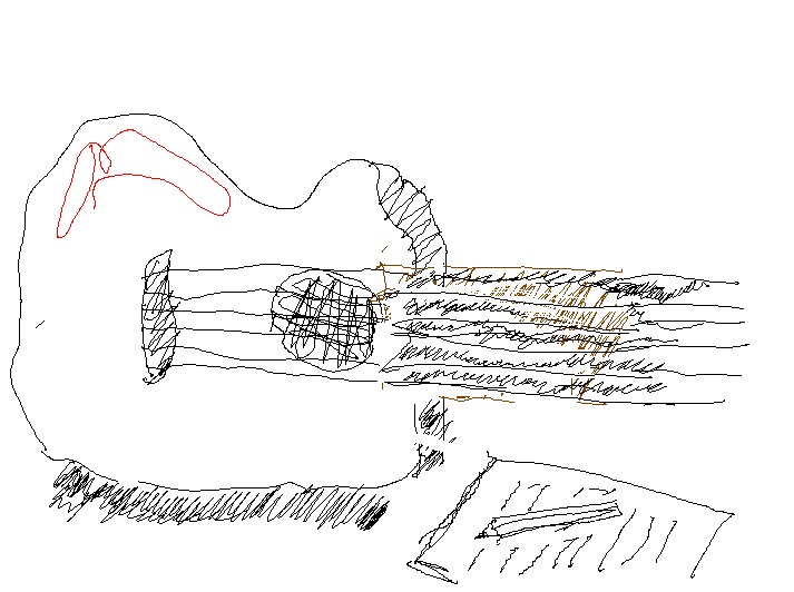 Someone gifted an Ibanez guitar, and someone else gifted a graphics tablet (a Huion HS64).