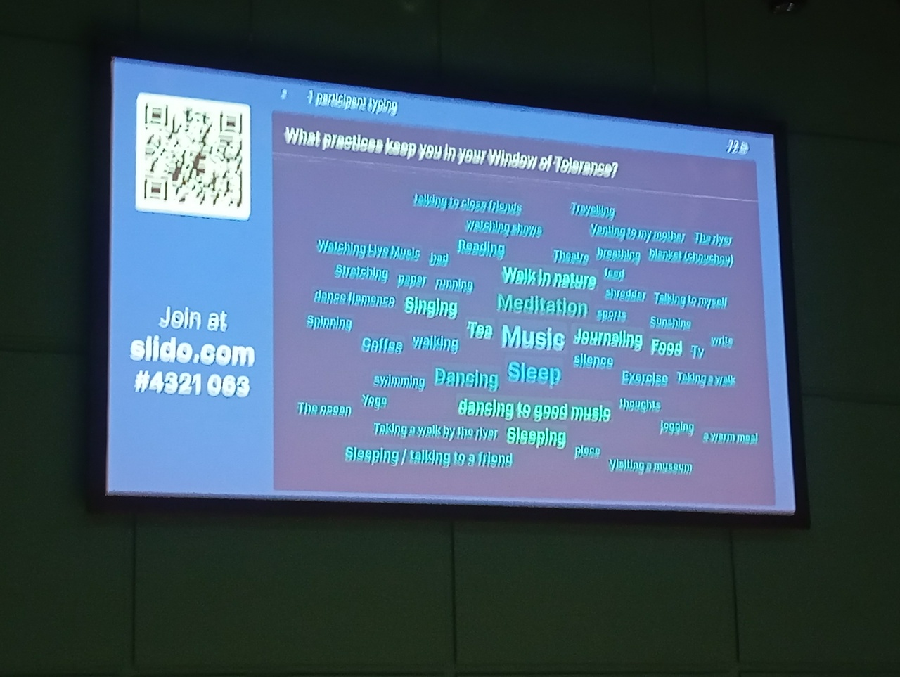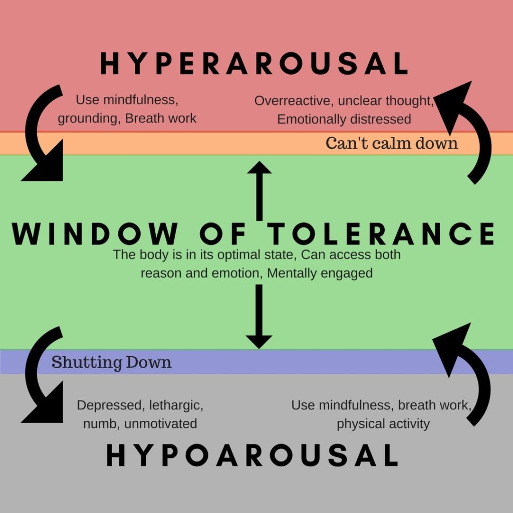 You have to think about how to get your body and mind into your Window of Tolerance. (diagram below).